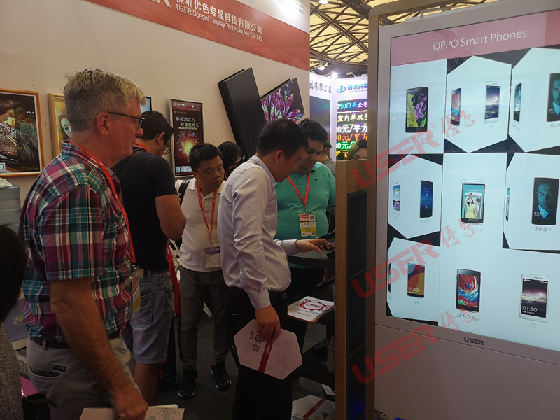 優(yōu)色專顯此次推出55寸雙面廣告機、65寸戶外公交站臺雙面廣告機、人體感應鏡面廣告機、裸眼3D廣告機、小微微信打印一體機、手機同屏會議一體機、人臉識別定點推送廣告系統(tǒng)、廣告機商場樓層導航系統(tǒng)以及無色差4K高清異行拼接屏等十大類商顯產品,展示內容涵蓋了消費電子終端、智能硬件、智慧零售、人工智能、數(shù)字文娛等領域,優(yōu)色專顯為大家準備了一場視覺與科技相融合的個性化展示體驗。