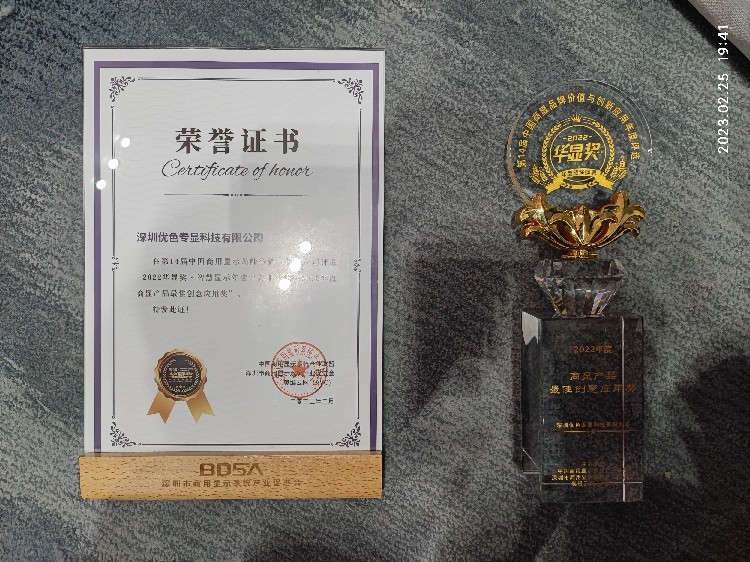 ?熱烈祝賀優色專顯榮獲“2022年度商顯產品最佳創意應用獎”-華顯獎