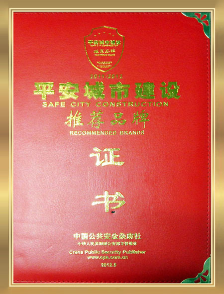 平安城市建設推薦品牌證書