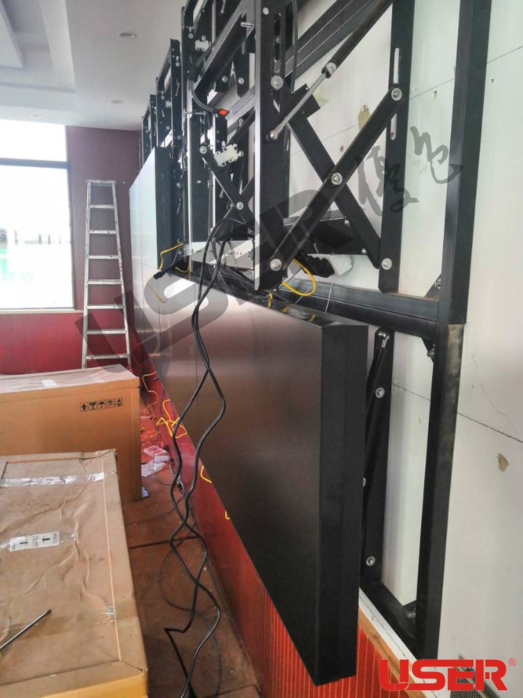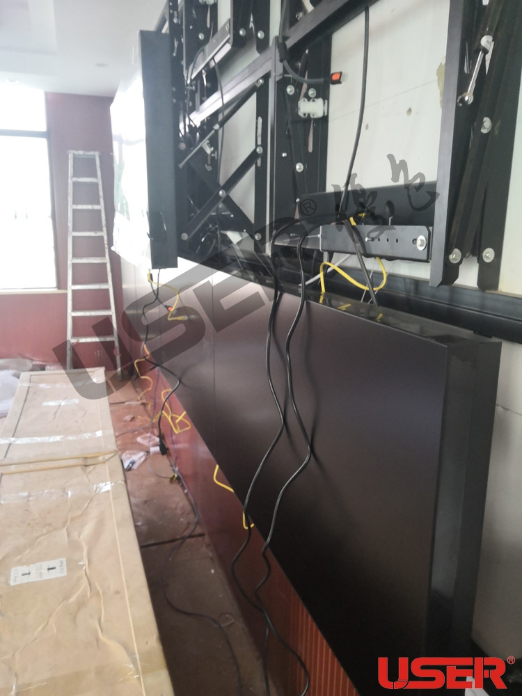 景德鎮某武警部隊會議廳選擇優色專顯46寸3x3拼縫3.5mm液晶拼接屏壁掛液壓支架解決方案,安裝成功且順利驗收,優色專顯全體同仁從深圳發來賀電。