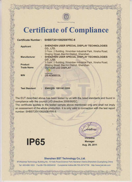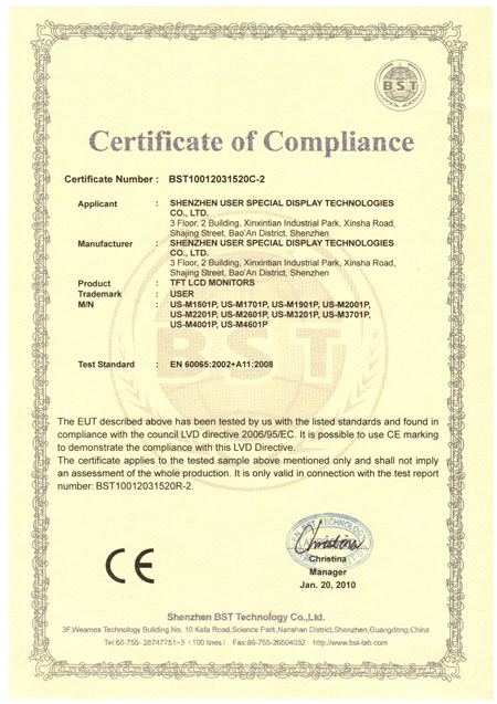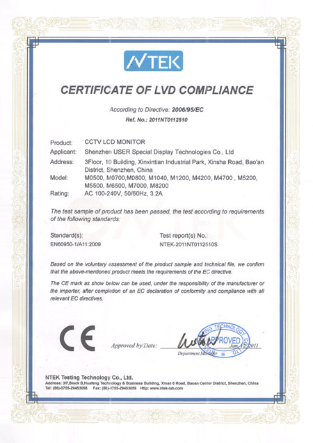 CE認證歐盟認證(液晶監視器 LVD證書)
