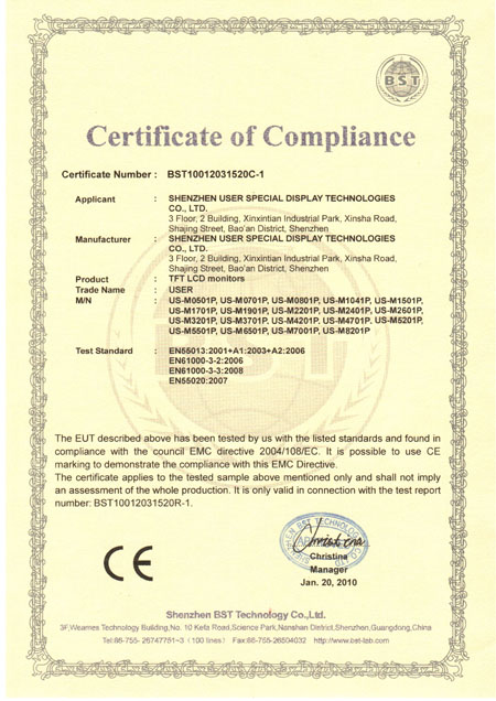 CE認證歐盟認證(液晶監視器 EMC證書)